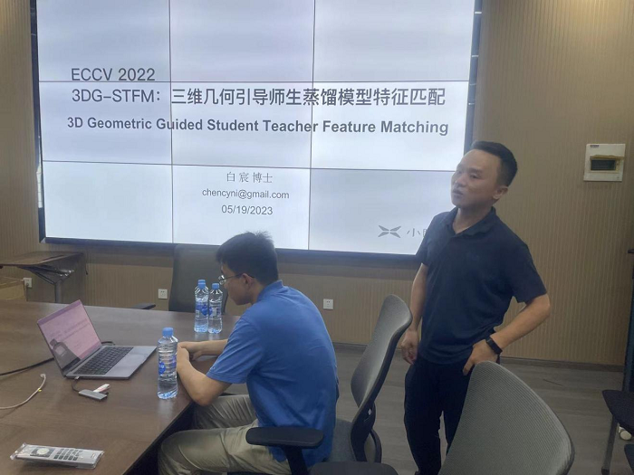 会上,白辰以《3DG-STFM: 3D Geometric Guided Student-Teacher Feature Matching》为主题,详细诠释了小鹏汽车计算机视觉团队在ECCV2022上提出的由3D几何视觉引导的用于图像之间特征点匹配的师生模型。 纹理缺失,重复图案,照明变化和运动模糊等诸多因素,视觉匹配一直以来是具有挑战性的问题。 该报告详细介绍了3DG-STFM,以包含三维信息的RGBD图像作为输入训练教师模型,来引导RGB图像作为输入的学生模型,从而实现几何深度信息的知识传递,使学生模型对RGB图像具有空间深度推理能力,最终实现了高精度的匹配效果。 此项研究成果可用于汽车标定,具有很强的实用价值。