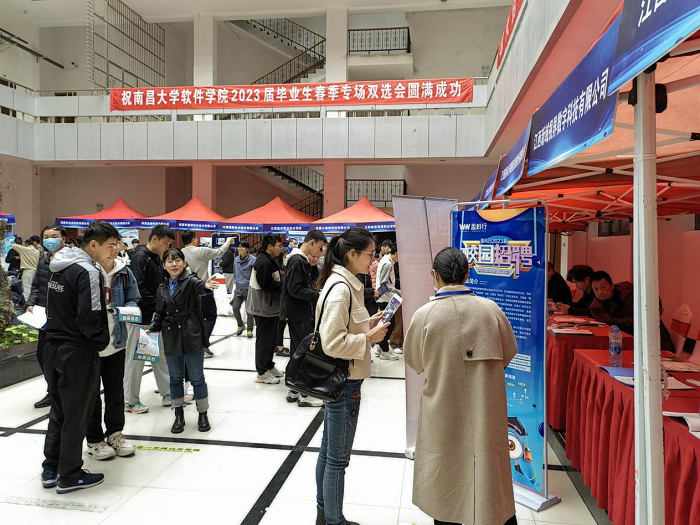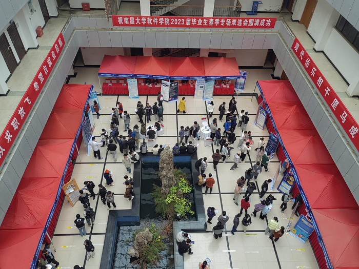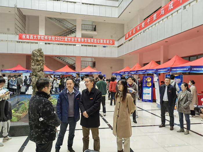 为深入学习贯彻党的二十大精神,落实党中央、国务院“稳就业”“保就业”决策部署,抢抓春季招聘关键期,更好地为用人单位和毕业生搭建双向选择平台,促进毕业生更高质量更充分就业,2023年3月28日,南昌大学软件学院2023届毕业生春季专场双选会在青山湖北区图书馆一楼大厅成功举行。南昌大学招生与就业工作处(就业中心)主任刘尧飞,软件学院党委书记艾淑平、院长饶泓等先后莅临现场指导工作。