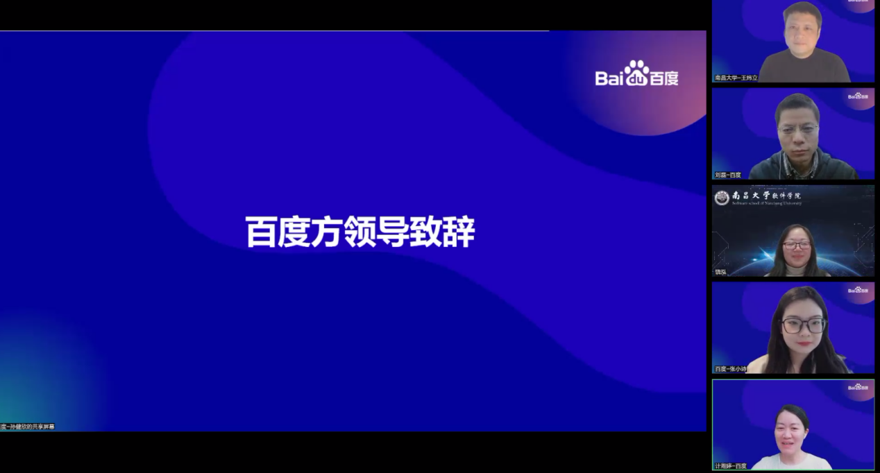 南昌大学刘耀彬副校长开场致辞,表示百度公司作为人工智能领域的头雁企业,在无人驾驶、云智一体、城市大脑、智能交通、数字人、元宇宙等领域,均有不错的成果;与此同时,百度公司长期以来一直关心和支持中国的高等教育,特别是对中国高等教育信息技术产教融合发展的支持;从资金、培训师资、技术资源等方面给予了高校实实在在的全方位支持,对推动我国人工智能科技创新、技术发展与人才培养都起到了重要作用。他表示这次松果菁英班实际上是校企合作共同培养人才的一次标杆性案例,希望同学们能通过松果菁英班更好地训练计算思维、提升应用创新能力,同时使大家在就业和未来的职业发展道路上有更好的竞争力。