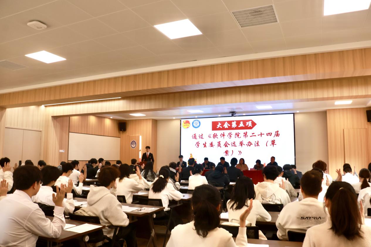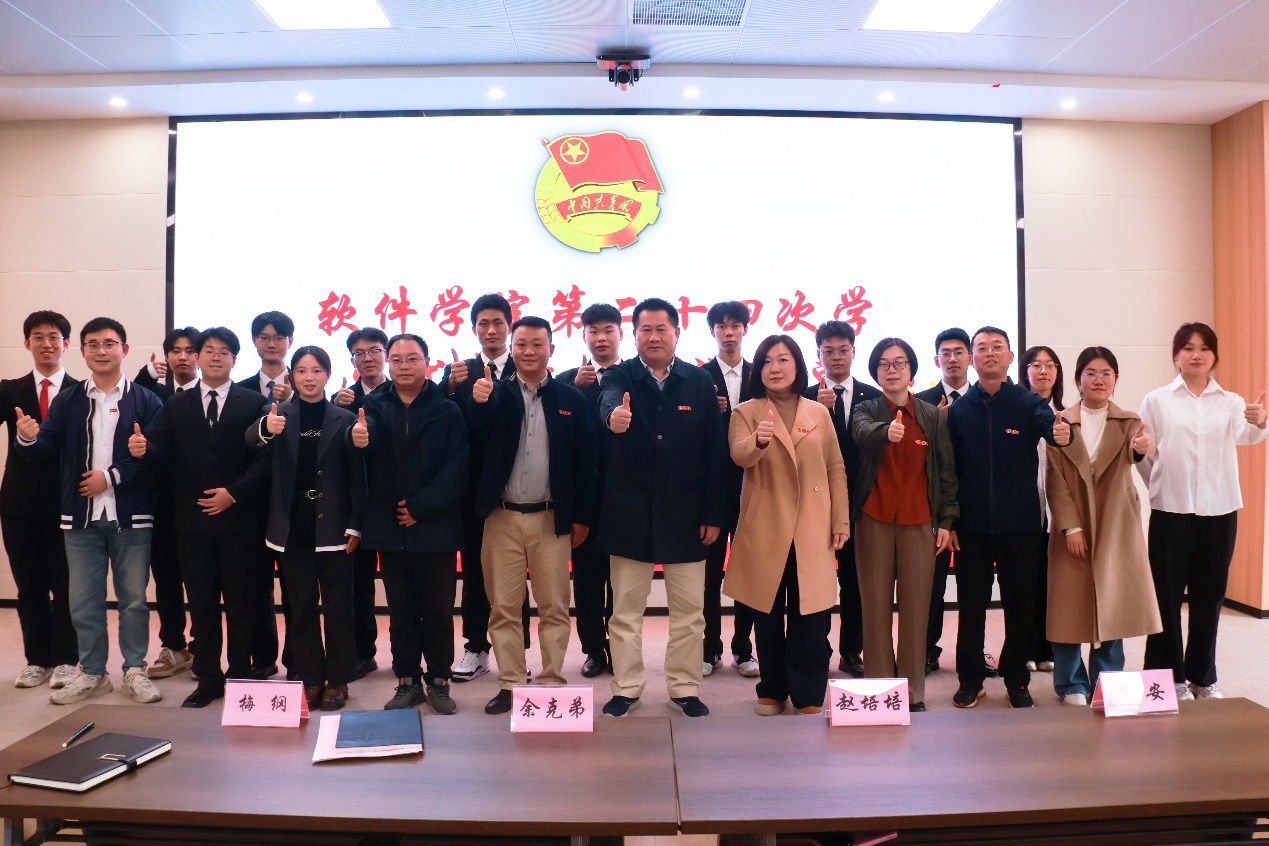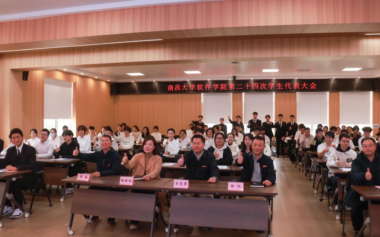 11月17日,南昌大学软件学院第二十四次学生代表大会在软件楼401室举行。学院党委书记余克弟、党委副书记赵培培等党政领导、教师代表及各团学组织101名学生代表共同参会。