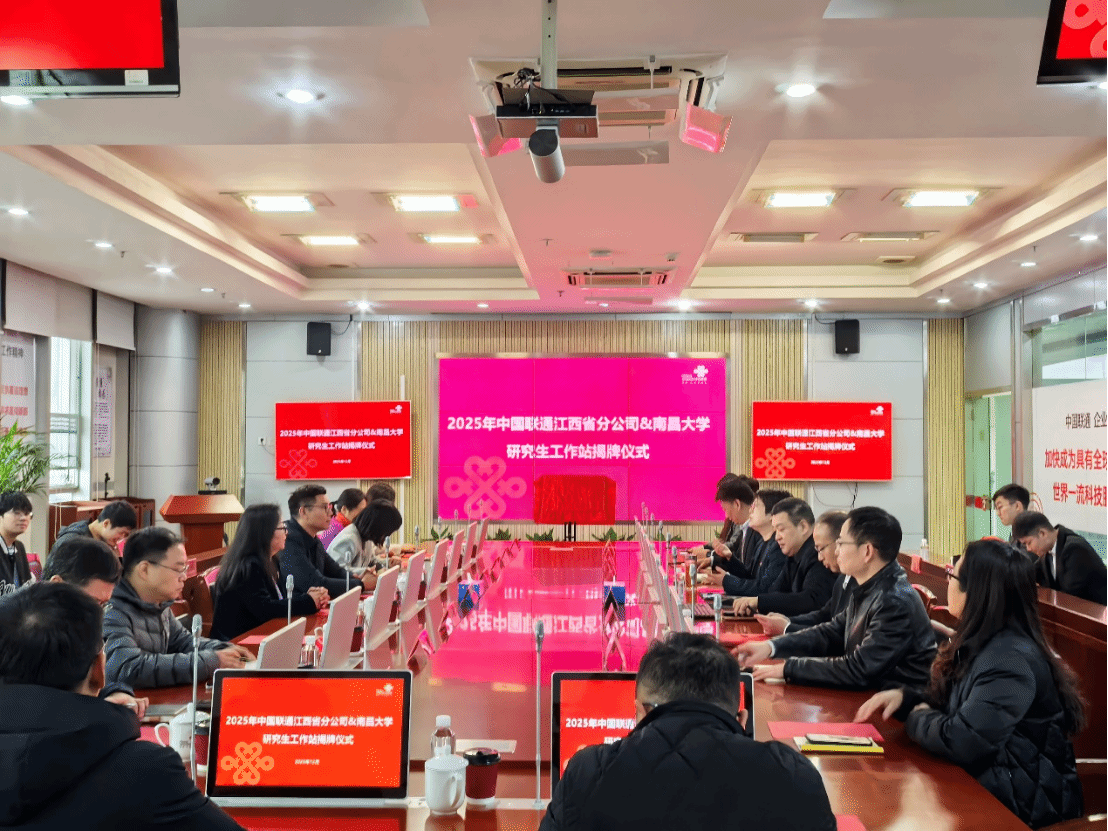 为贯彻落实“一体推进教育科技人才发展”方针,12月23日,南昌大学与中国联通江西省分公司(以下简称“江西联通”)共建的研究生工作站揭牌仪式在江西联通举行。双方围绕卓越工程师人才培养模式、研究生工作站运行机制等深入交流,共同探索校企协同、产教融合的高水平人才培养新路径。南昌大学研究生院、卓越工程师学院、软件学院相关负责人及师生代表,江西联通相关部门负责人出席活动。仪式由江西联通科技创新部副总经理曾炜主持。