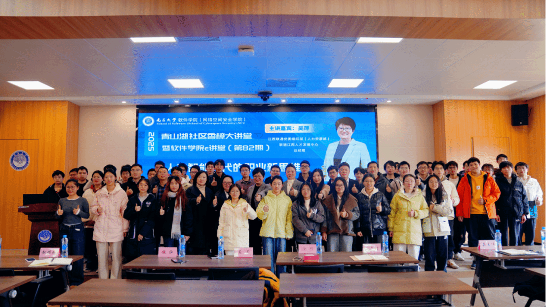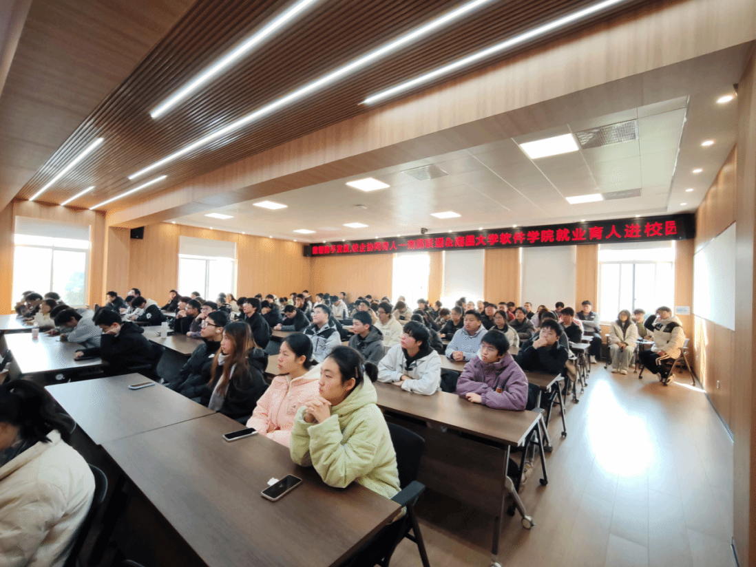 近日,南昌大学软件学院与江西联通联合举办“就业育人进校园活动”。软件学院院长饶泓、各年级学生代表共计百余人参与此次活动。活动由软件学院党委副书记赵培培主持,江西联通党委组织部(人力资源部)总经理吴萍受邀担任主讲嘉宾。