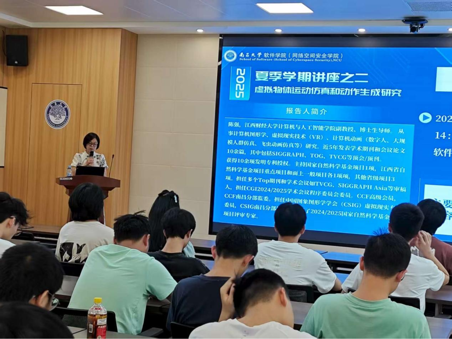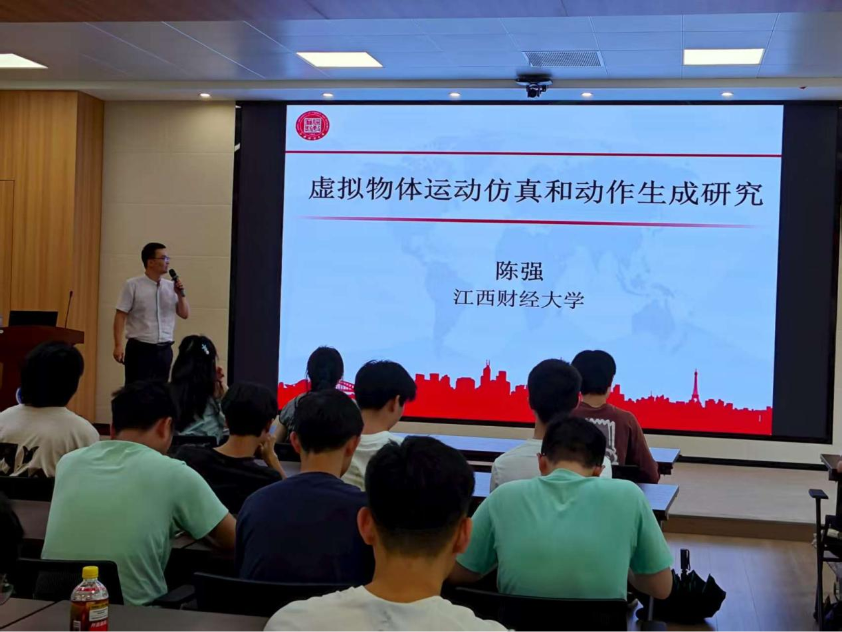 9月8日下午,江西财经大学计算机与人工智能学院副教授、博士生导师陈强应邀来到我院,在软件楼401会议室作题为“虚拟物体运动仿真和动作生成研究”的专题讲座。讲座由软件工程系负责人魏勍颋老师主持,师生代表近100人到场聆听。