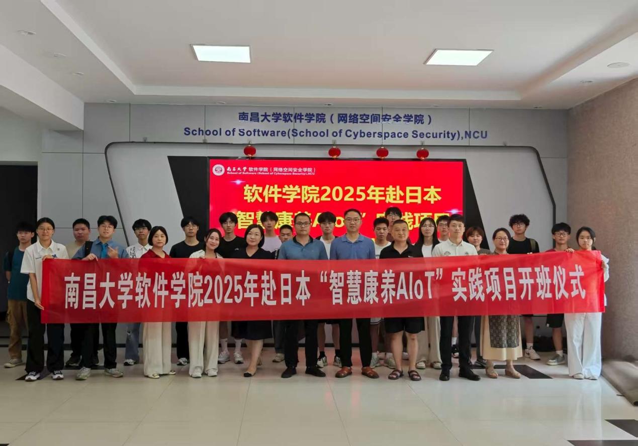 8月4日,南昌大学软件学院举行“2025年赴日本‘智慧康养AIoT’实践项目”开班仪式。院党委副书记赵培培、日本株式会社阿斯旺公司代表余善钢董事长一行,项目指导老师、国际合作交流办工作人员以及全体参与项目的学生出席仪式。活动由副院长罗铭主持。