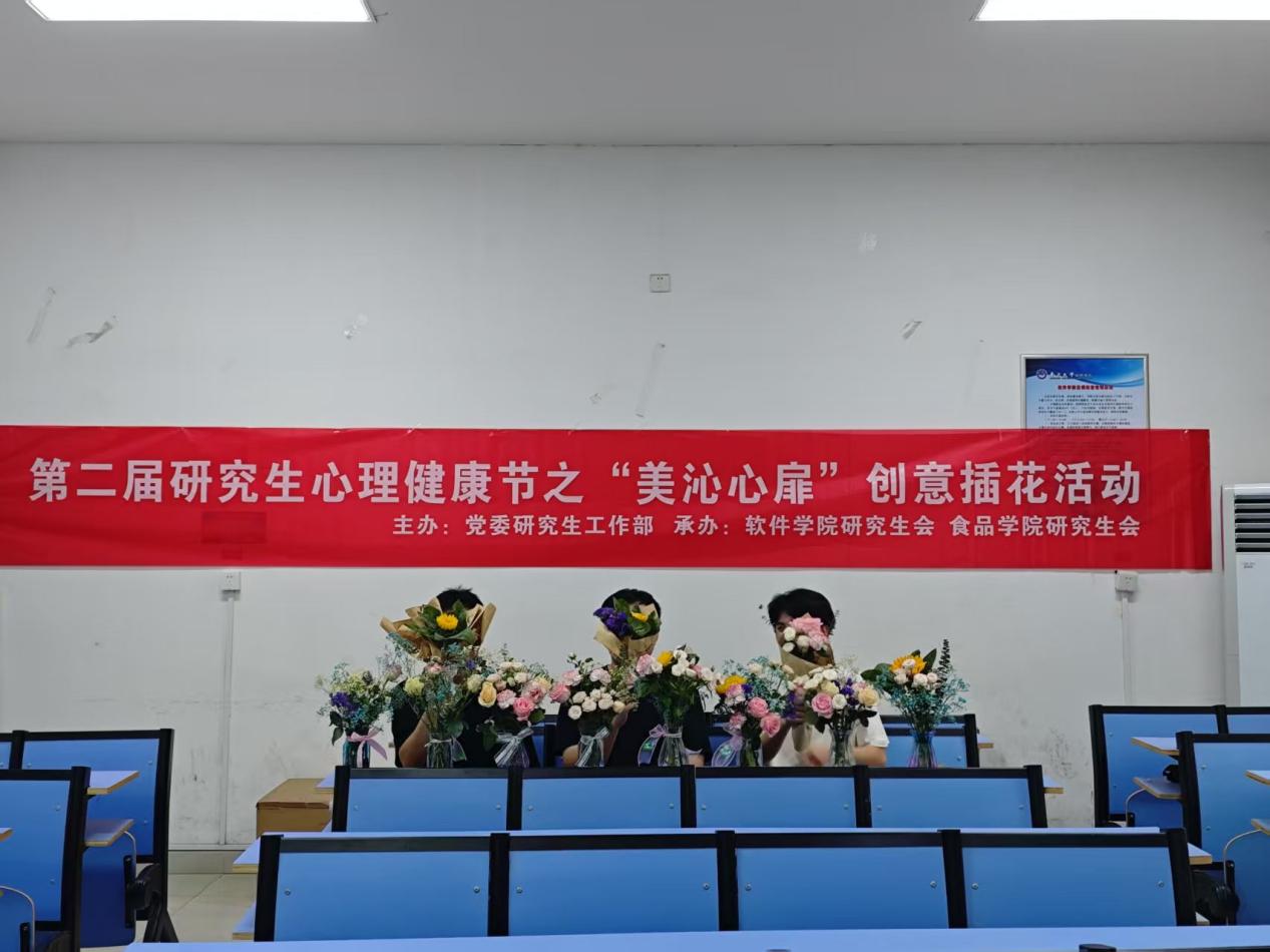 为提升研究生心理健康教育工作实效,5月16日,软件学院联合食品学院在软件楼321教室举办第二届研究生心理健康节系列活动之“美沁心扉”创意插花活动。本次活动吸引了近百名研究生参与,通过艺术疗愈形式帮助学生在科研间隙调适心理状态。