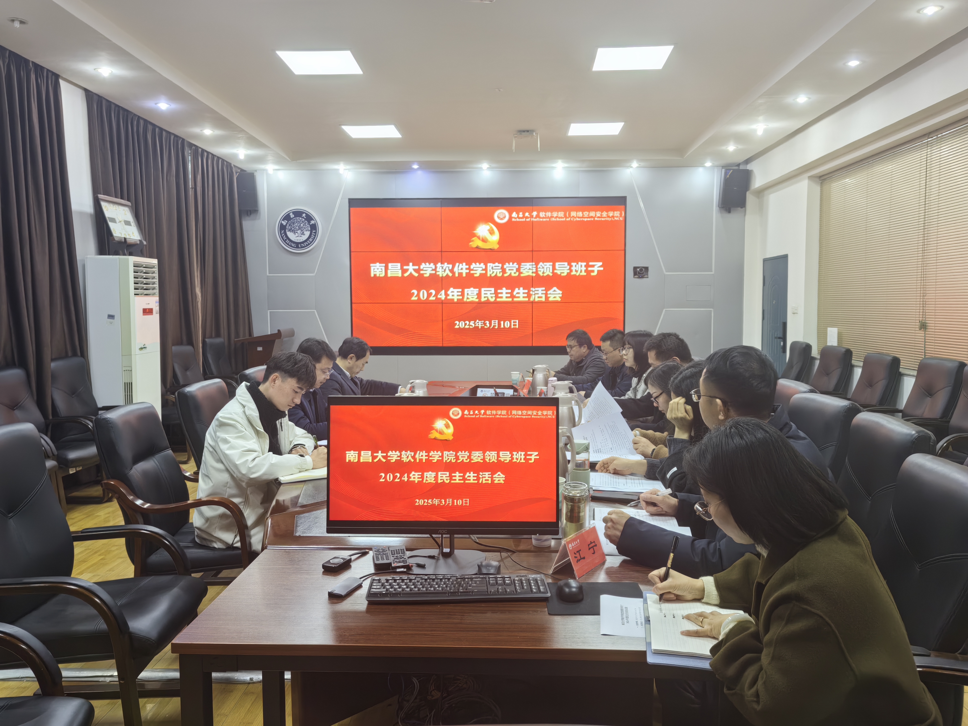按照校党委统一安排,3月10日,软件学院召开党委领导班子2024年度民主生活会。校党委常委、党委组织部部长刘建光到会作点评讲话,督导组组长黄长才到会指导。学院全体党员院领导参加会议,副院长、工会主席、学院办公室负责人、党员教师等各类别代表列席会议。院党委书记余克弟主持会议。