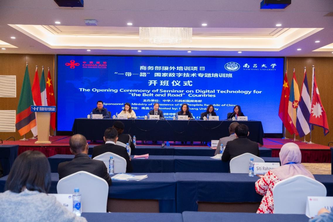 南昌大学国际教育学院副院长(主持工作)陈奕,南昌大学软件学院党委书记余克弟、院长饶泓及学院领导班子成员及来自印度尼西亚、古巴、尼泊尔、尼日利亚、赞比亚、格林纳达共6个国家的官员以及技术人员一同出席。开班仪式由饶泓主持。