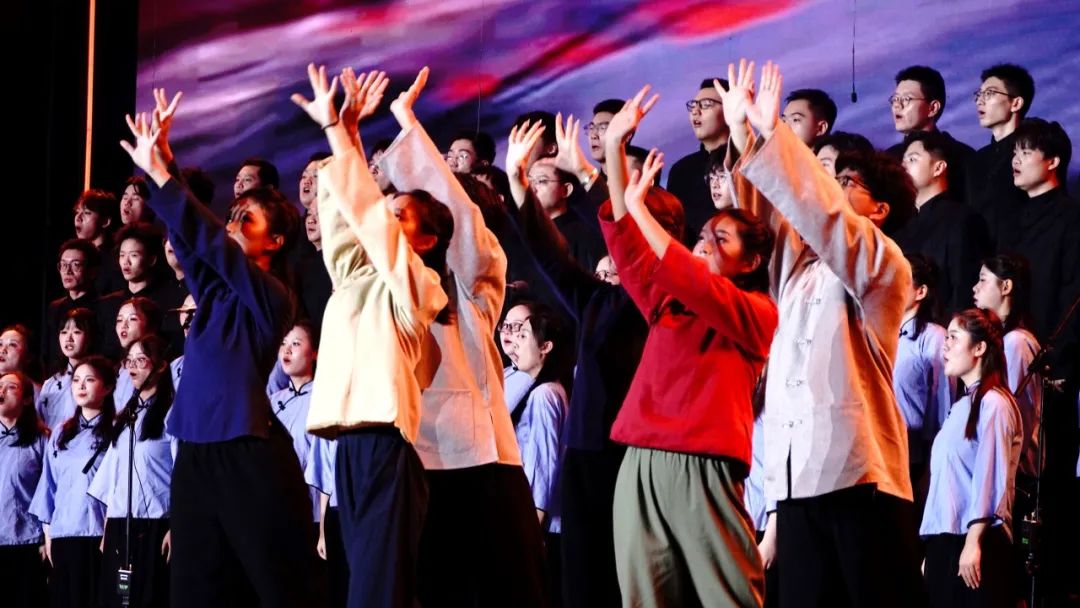 “保卫黄河、保卫华北、保卫全中国!”舞台上,我院65名师生一齐唱响《保卫黄河》,歌声雄浑激荡,为新中国走过75周年的光辉岁月而颂歌,唱出中华儿女誓死保卫祖国山河的坚定决心。