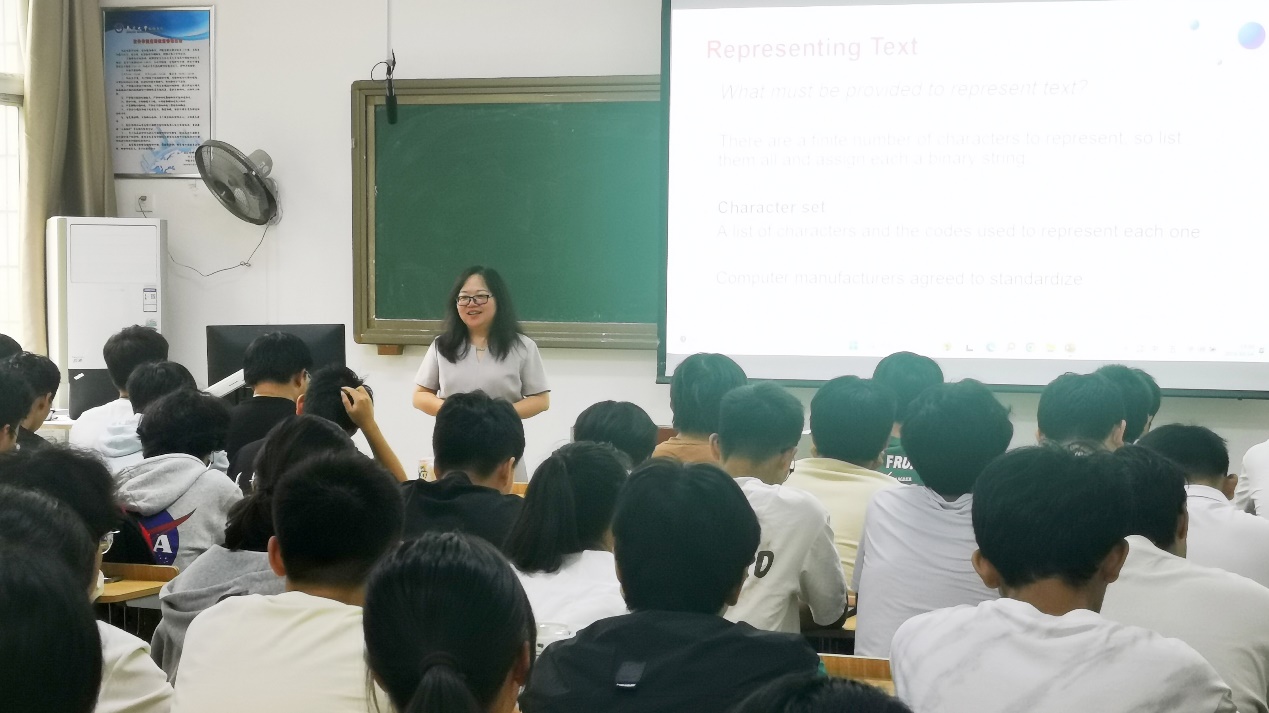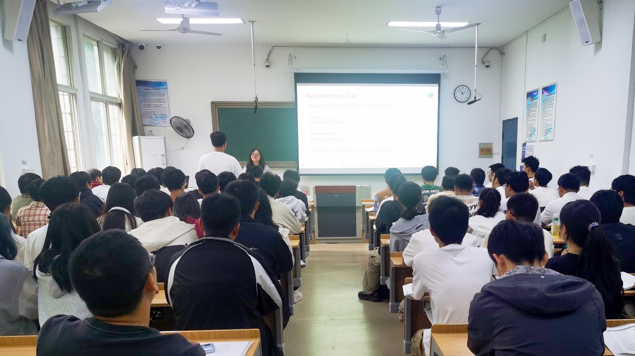 课上,饶泓教授深入浅出地向大一新生介绍了计算机中数据表示这一核心概念,即如何将各种形式的信息转换成计算机能够处理的形式——位模式。通过对数字、文本、音频、图像和图形、视频等不同类型的数据的讲解,学生建立起计算机系统处理数据的基本理解,从而为进一步探索信息技术打下坚实的理论基础。