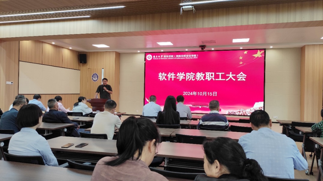 10月15日下午,软件学院在软件楼401会议室召开了本科教育教学审核评估迎评冲刺阶段工作推动会,学院全体教职工参加了本次会议,会议由邹艳妮副院长主持。