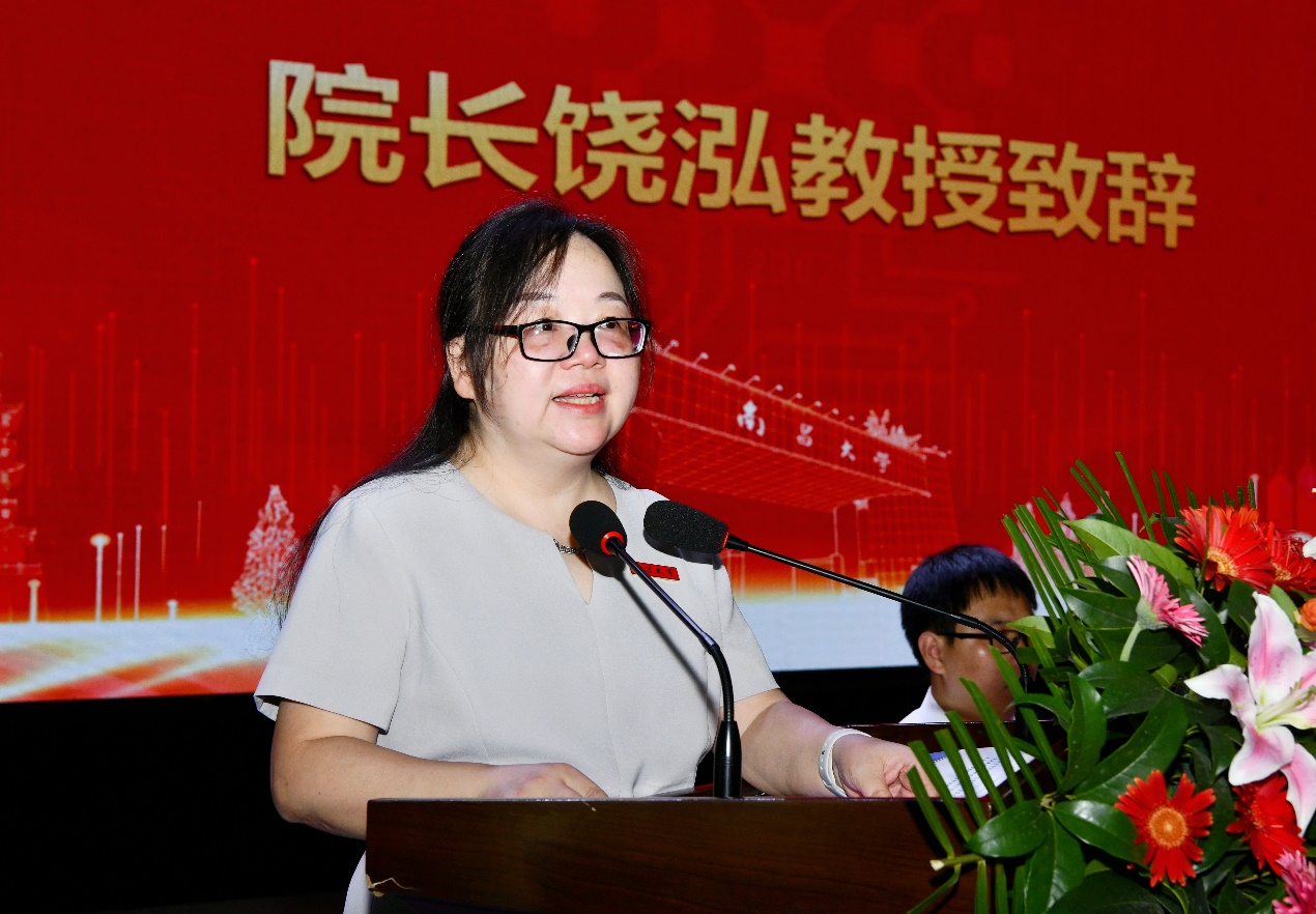 饶泓代表学院对2024级新生表示热烈欢迎,并向新生解读了“大学之道”和南昌大学校训的涵义,介绍了学科专业、科研平台、产教融合、人才培养等方面取得的成绩。她勉励新同学将个人成长与国家战略相结合,要关注个人能力提升,立大志、明大德、成大才、担大任,努力成长为担当国家大任的栋梁之才。