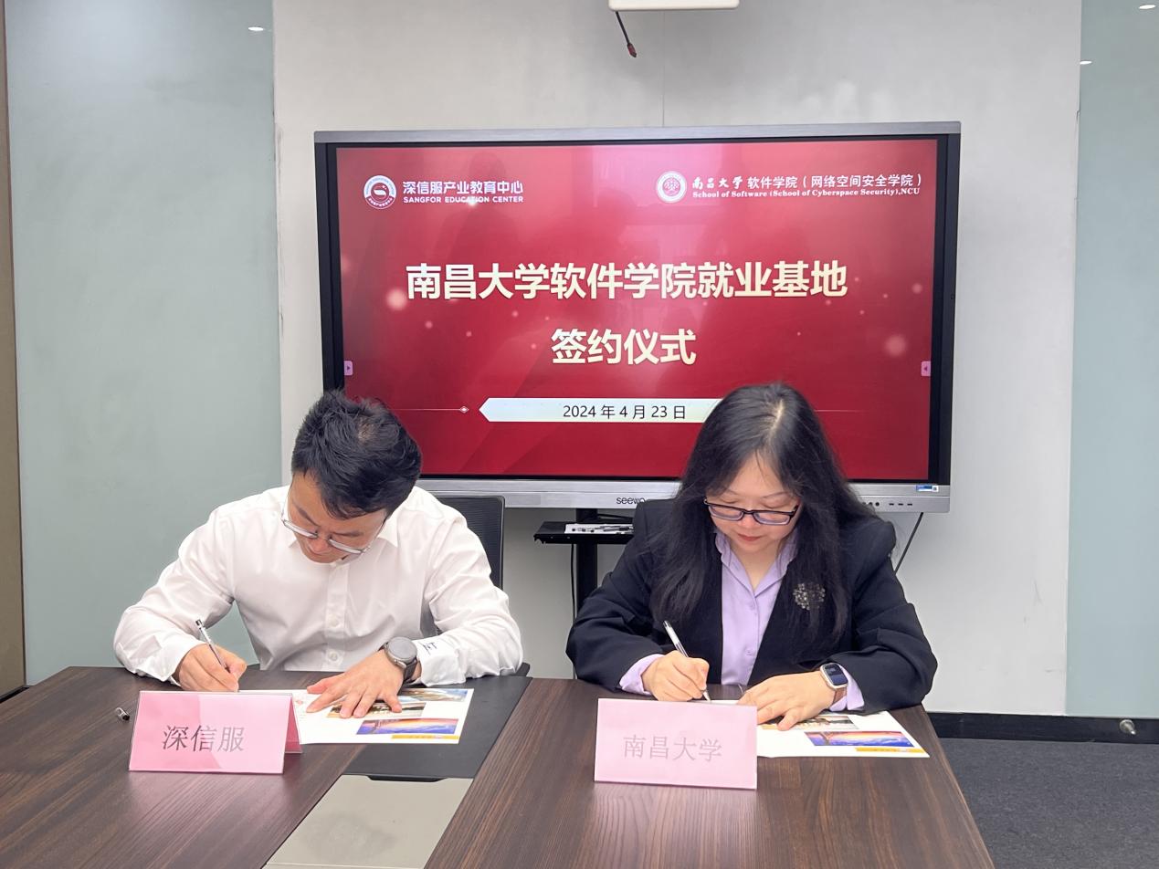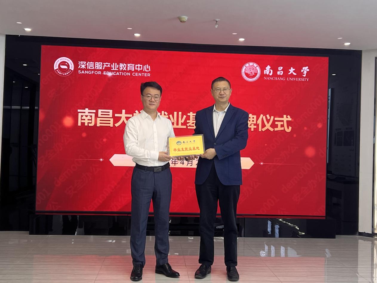 调研期间,学校与深信服科技股份有限公司,举行了“南昌大学就业基地”授牌仪式。刘耀彬强调,希望以此为签约契机,进一步深化校企交流合作,打造校企合作基地、深挖校企合作项目、开展校企联合培养,架起校企合作的人才桥梁、情感桥梁,为我校学子提供更多的就业实习岗位。