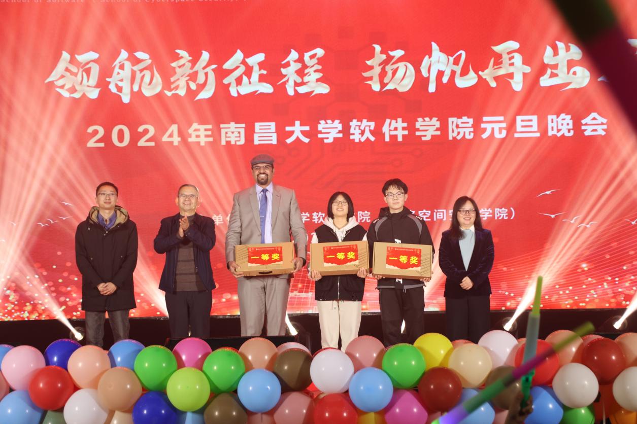 晚会现场还邀请与会嘉宾老师抽取了由北京天融信网络安全技术有限公司、南昌市小核桃科技有限公司、湖南智擎科技有限公司、北京燕兴国际教育、江西校启联文化传播有限公司、深圳市金证科技股份有限公司赞助的各类奖品,为学院师生送上了精美的节日祝福。