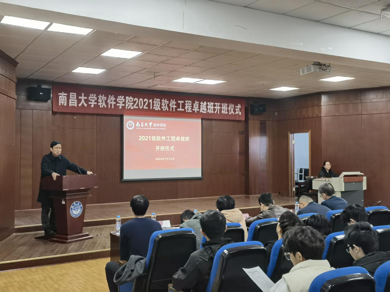 为进一步提升人才培养质量,加强学生综合素质教育,推进全面深化改革,1月12日,南昌大学软件学院2021级软件工程卓越人才培养班开班仪式在软件楼401会议室举行。校教务处副处长付智,学院党委书记艾淑平、党委副书记江婕,福建新大陆支付有限公司校招主管谢朝政,卓越班指导教师、学院教务学工部门负责人以及47名卓越班学生参加,仪式由学院副院长夏灵林主持。