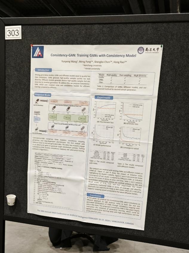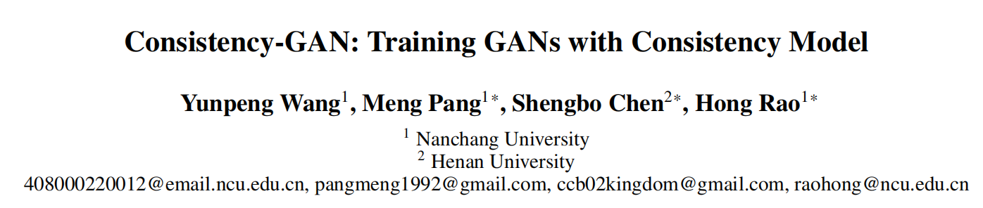 我院软件学院硕士研究生王云朋的论文“Consistency- GAN: Training GANs with Consistency Model”被国际先进人工智能协会(The Association for the Advancement of Artificial Intelligence,以下简称AAAI)第38届年会接收。王云朋为论文第一作者,南昌大学饶泓教授,特聘教授庞孟和河南大学陈盛博教授为共同通讯作者、南昌大学为第一署名单位,这也是我院硕士研究生首次在CCF A类国际会议发表论文。