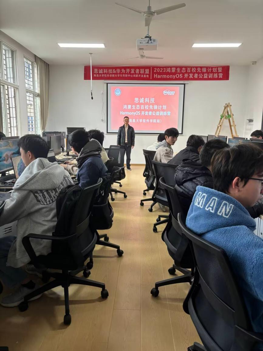 为了进一步促进鸿蒙生态高校人才培养,提升学生的专业技能和就业竞争力,应学院邀请,校企合作企业江西思诚科技有限公司联合华为开发者联盟,于2023年12月9日至12月28日,来校举行思诚科技“2023 鸿蒙生态百校先锋计划暨HarmonyOS开发者公益训练营”活动。