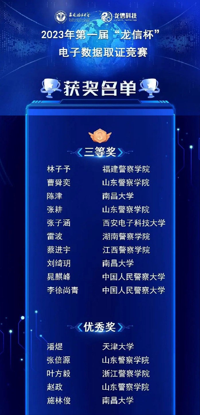 本次“龙信杯”电子数据取证竞赛由西南政法大学主办、苏州龙信信息科技有限公司承办,重点针对模拟案件进行电子数据调查取证,从而全面检验参赛者电子数据取证方面的基础知识、综合素质及动手能力,切实提高学生电子数据取证专业水平,促进电子数据取证人才培养。