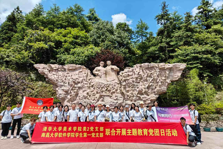 为深入开展学习贯彻习近平新时代中国特色社会主义思想主题教育,推进主题教育走深走实,构建学生党团联学联建新模式。7月9日,南昌大学软件学院学生第一党支部和清华大学美术学院美2党支部共赴红色革命圣地——井冈山联合开展主题教育党团日活动。