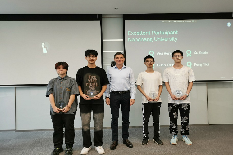 在极客挑战赛颁奖环节,学院艾书记和公司北亚区CEO Dirk先生参与了颁奖活动,Dirk先生为学院烽火信安社团学生徐可欣、魏仁杰、管延浩、冯羿镝颁发了荣誉奖牌。