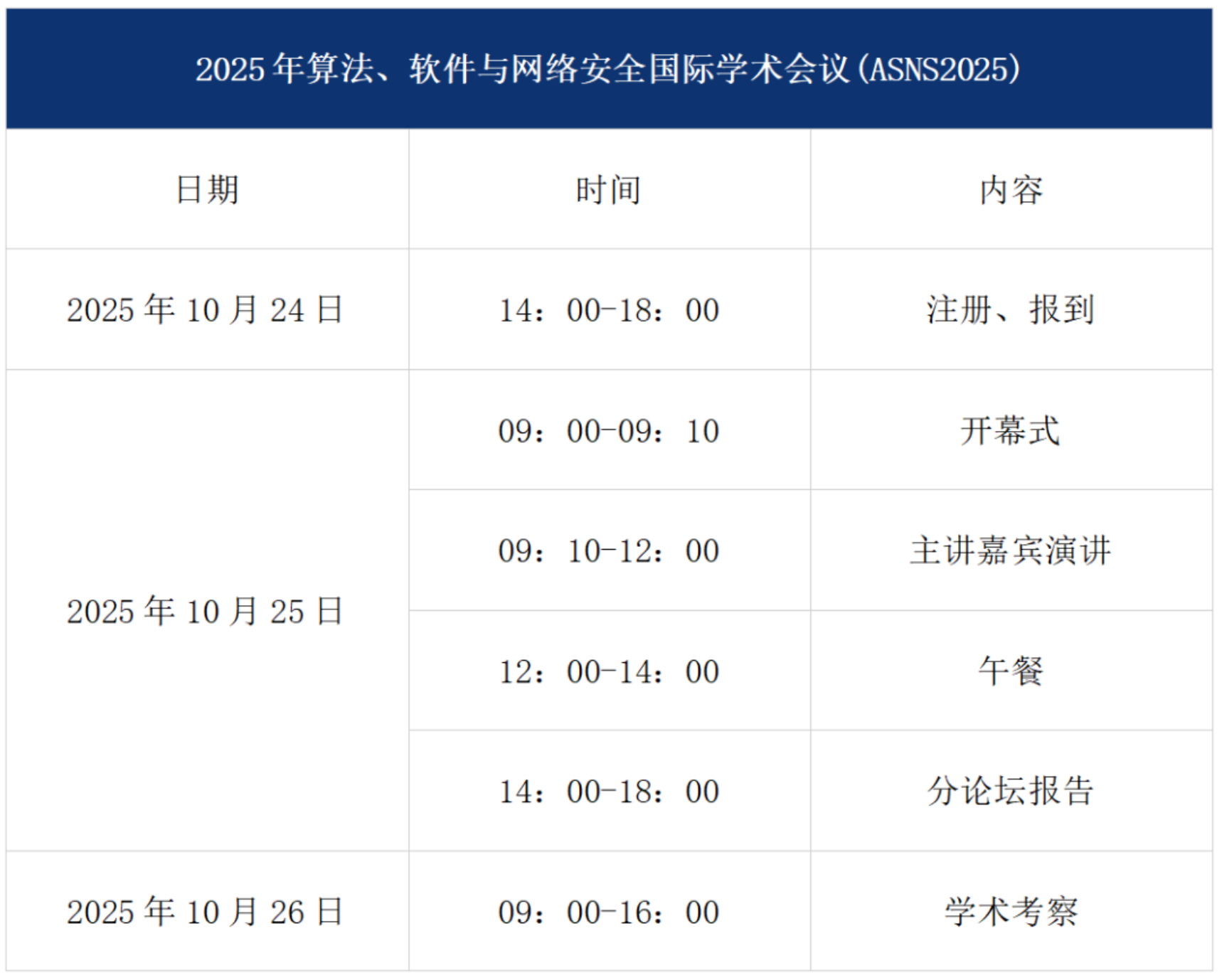 由南昌大学、江西省计算机学会、江西省数字经济学会联合主办的2025年算法、软件与网络安全国际会议(ASNS 2025)将于2025年10月24日至26日在中国南昌举行,会议旨在汇聚全球研究人员、从业者和行业专家,共同探讨算法、软件工程及网络安全领域的最新研究成果与实践经验,聚焦前沿趋势与关键挑战,通过主题演讲、技术报告及专题研讨等形式,搭建跨领域合作交流平台。与会者通过与知名专家的深度交流、前沿技术案例的展示及互动讨论,拓展学术视野并探索潜在合作机遇。