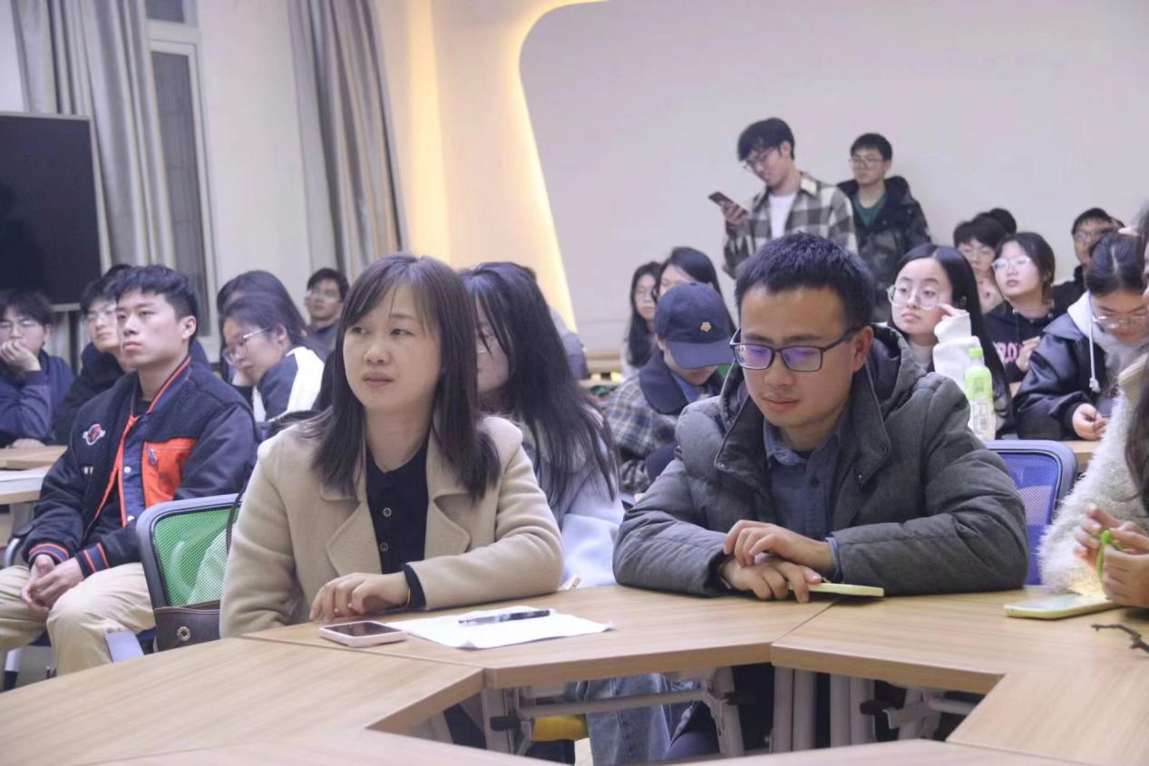 展示后,三位学长亲切地与观摩的学弟学妹们互动。“学长是如何分配每天的学习和生活”“学长对我们的大学生活有何建议”“学长对于大学期间是否做科研项目有什么看法”......三位候选人通过自身经历一一做了解答,同时也勉励学弟学妹们做好个人规划,脚踏实地完成专业学习,通过学科竞赛培养创新能力,利用实践志愿活动提升综合素质。