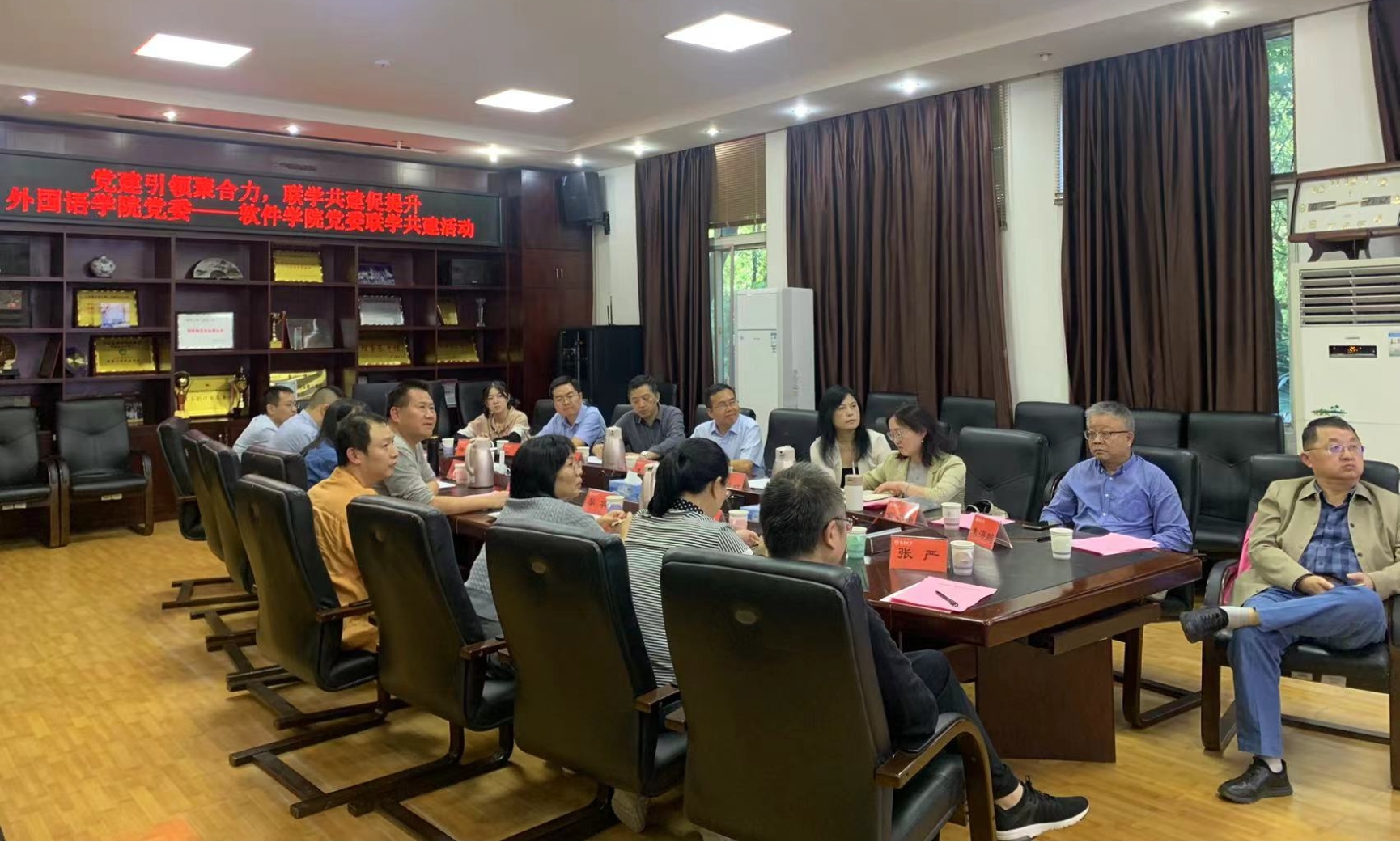 为进一步强化党建引领,推动党建与业务工作深度融合,促进兄弟学院深入交流,10月11日,软件学院党委与外国语学院党委在软件楼开展以“党建引领聚合力 联学共建促提升”为主题的联学共建主题党日活动。双方学院党政负责同志、部门相关负责人共计18人参加活动。
