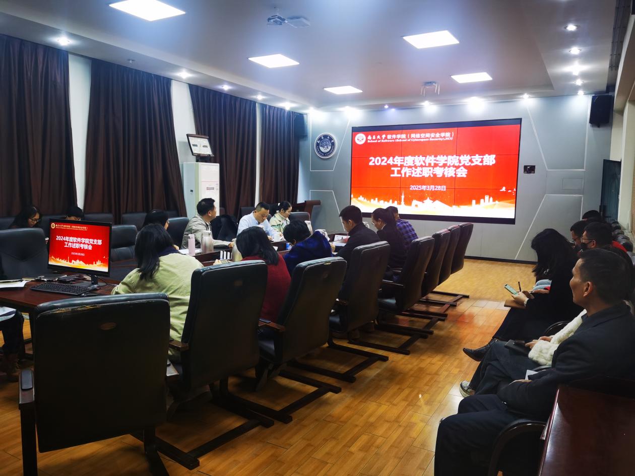 为进一步加强学院党支部建设标准化、规范化、信息化,充分发挥基层党支部在学校中心工作中的战斗堡垒作用,3月28日下午,软件学院党委组织召开2024年度党支部工作述职考核会。学院党委委员梅纲主持会议,党委书记余克弟,党委副书记江婕,各党支部书记、副书记和支委等共20余人参加会议。