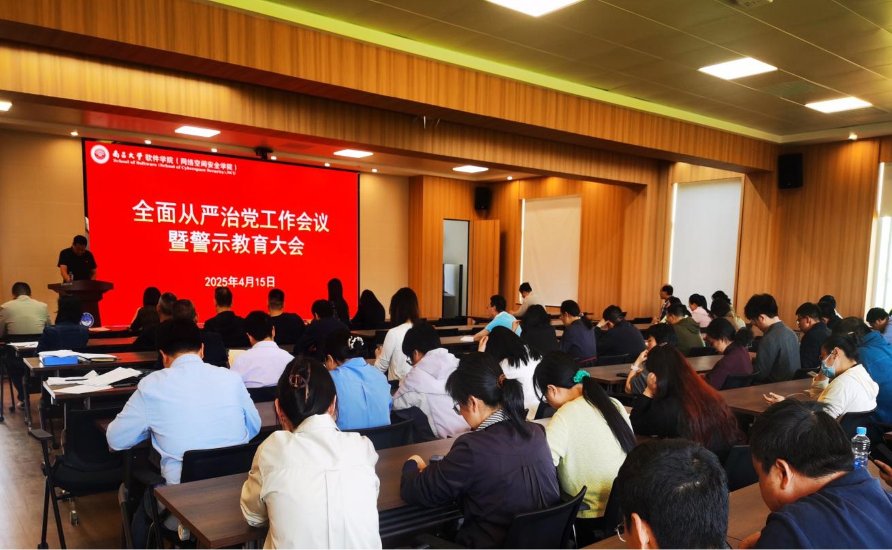 4月15日下午,软件学院召开2025年全面从严治党工作会议暨警示教育大会,深入学习贯彻党的二十大、二十届三中全会精神和习近平总书记在二十届中央纪委四次全会上的重要讲话精神、省纪委十五届五次全会精神、2025年教育系统全面从严治党工作视频会议精神,部署安排今年重点工作。院党委书记余克弟主持会议并讲话。