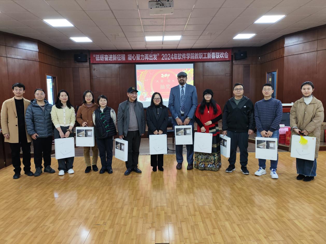 玉兔辞岁留锦绣,祥龙贺岁福满门。1月18日,软件学院举办2024年教职工迎新联欢会和美食品鉴交流会。软件学院领导班子成员、教职工代表约100人欢聚一堂,共迎新春,欢庆佳节。
