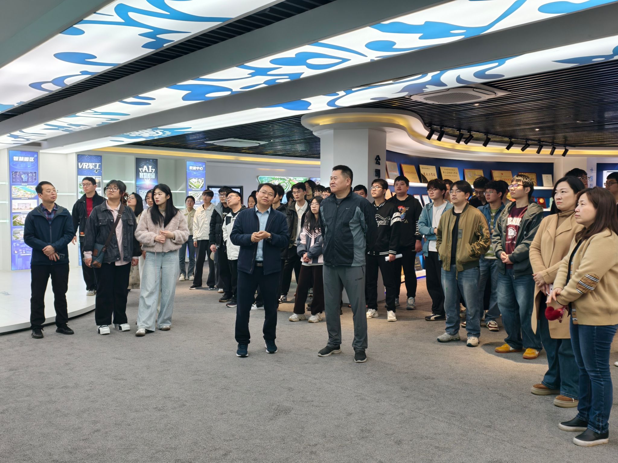 在泰豪软件股份有限公司副总裁张远来及相关负责人陪同下,师生一行先后参观泰豪信息大厦展厅、研发中心等核心区域,通过实地察看和现场讲解,了解企业发展历程、核心技术实力、主营业务布局及特色企业文化,对企业运营模式和行业发展前景形成清晰认知。